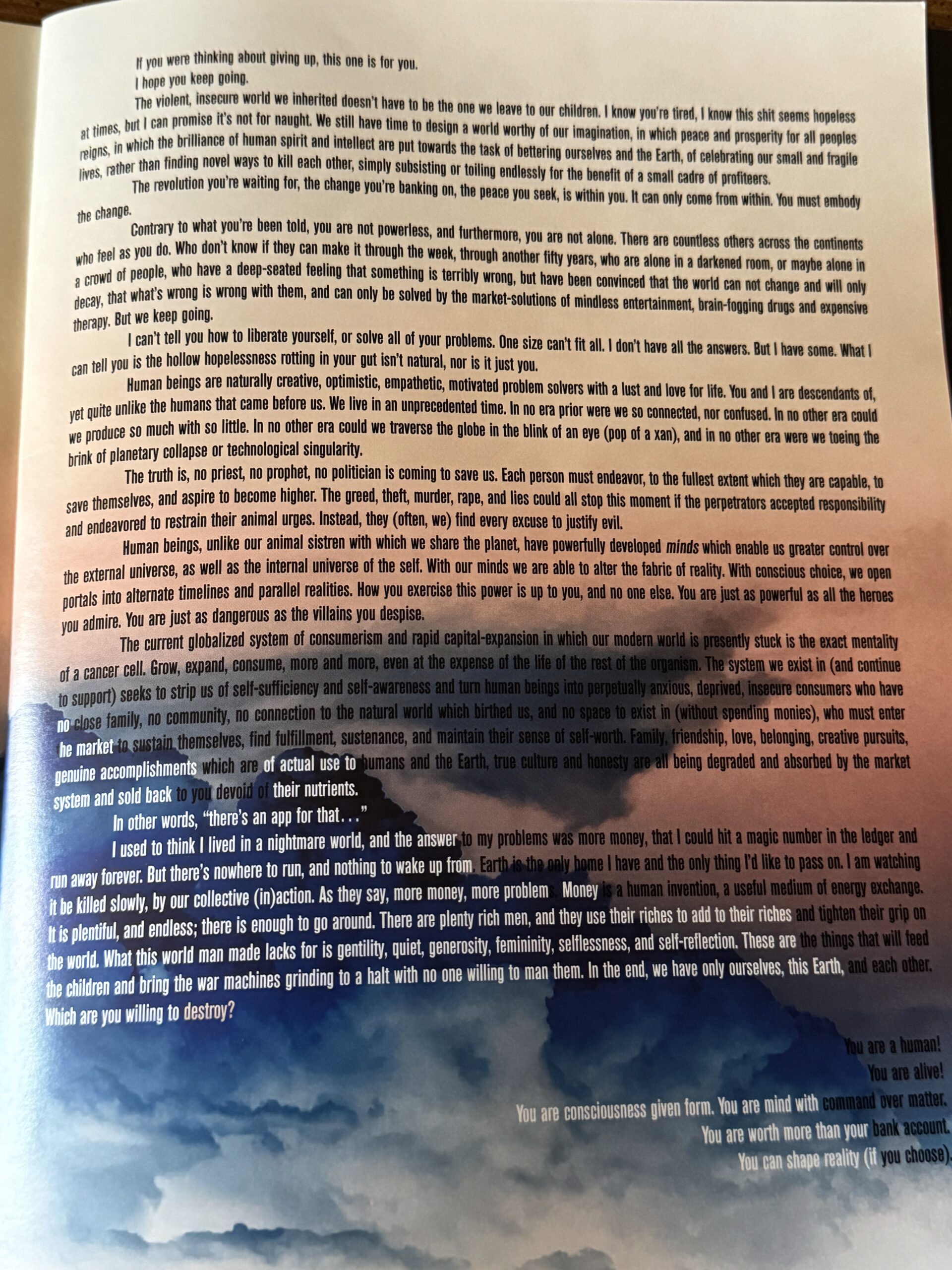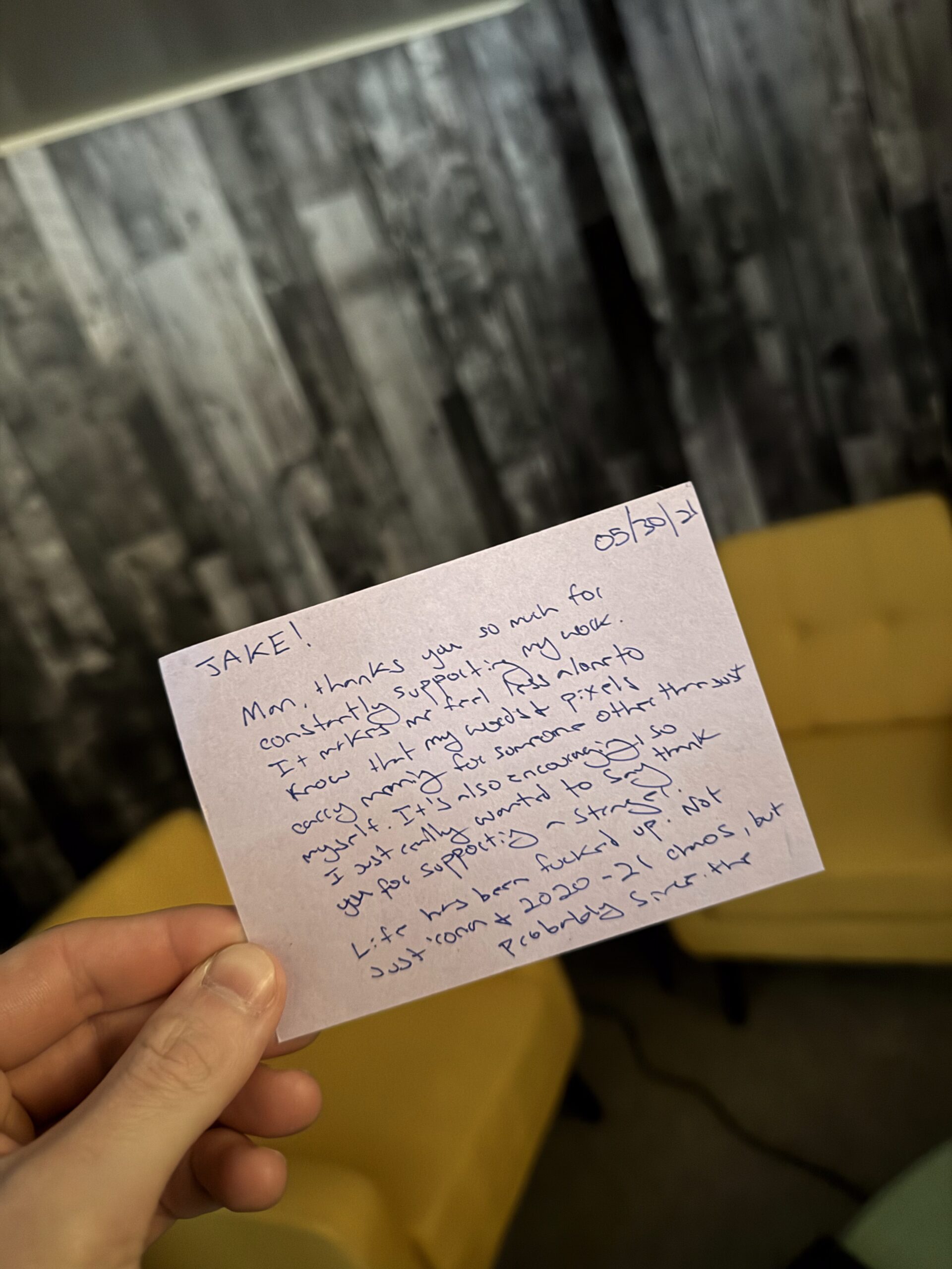 After a small magazine purchase from an independent artist I came across while running this page, it introduced me to the value of personal connection, community and the meaningful words in the magazine and handwritten thank-you notes from the artist (pictured below) sparked a new appreciation for supporting creators. The artists name was @Ideapathy but his instagram and website have since disappeared!