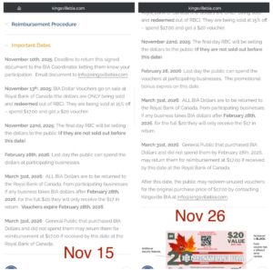 When I reviewed the original terms for the BIA Bucks promotion, the rules on their website stated that the vouchers expired on February 28 and expired vouchers could only be reimbursed by consumers at RBC until March 31. I compared this to other local BIAs whose similar promotions do not expire at all. For consumers, there was no option to be reimbursed/refunded for expired vouchers after March 31 listed on their website. This concerned me because a 3 month expiration (4 with consideration of the reimbursement period) on “gift cards” is unheard of – and potentially raises legal concerns.